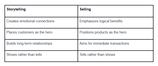 The contrast between traditional selling and storytelling remains stark yet significant.